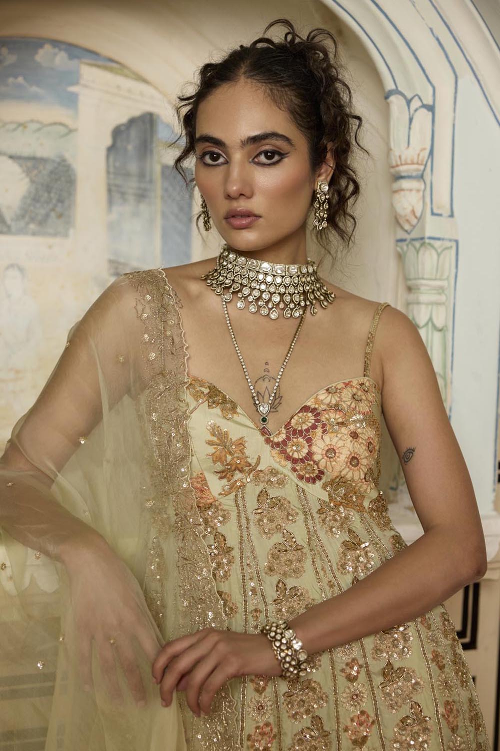 • Dupatta with our signature badla work and cutwork embroidery with sequins botties scattered all over.