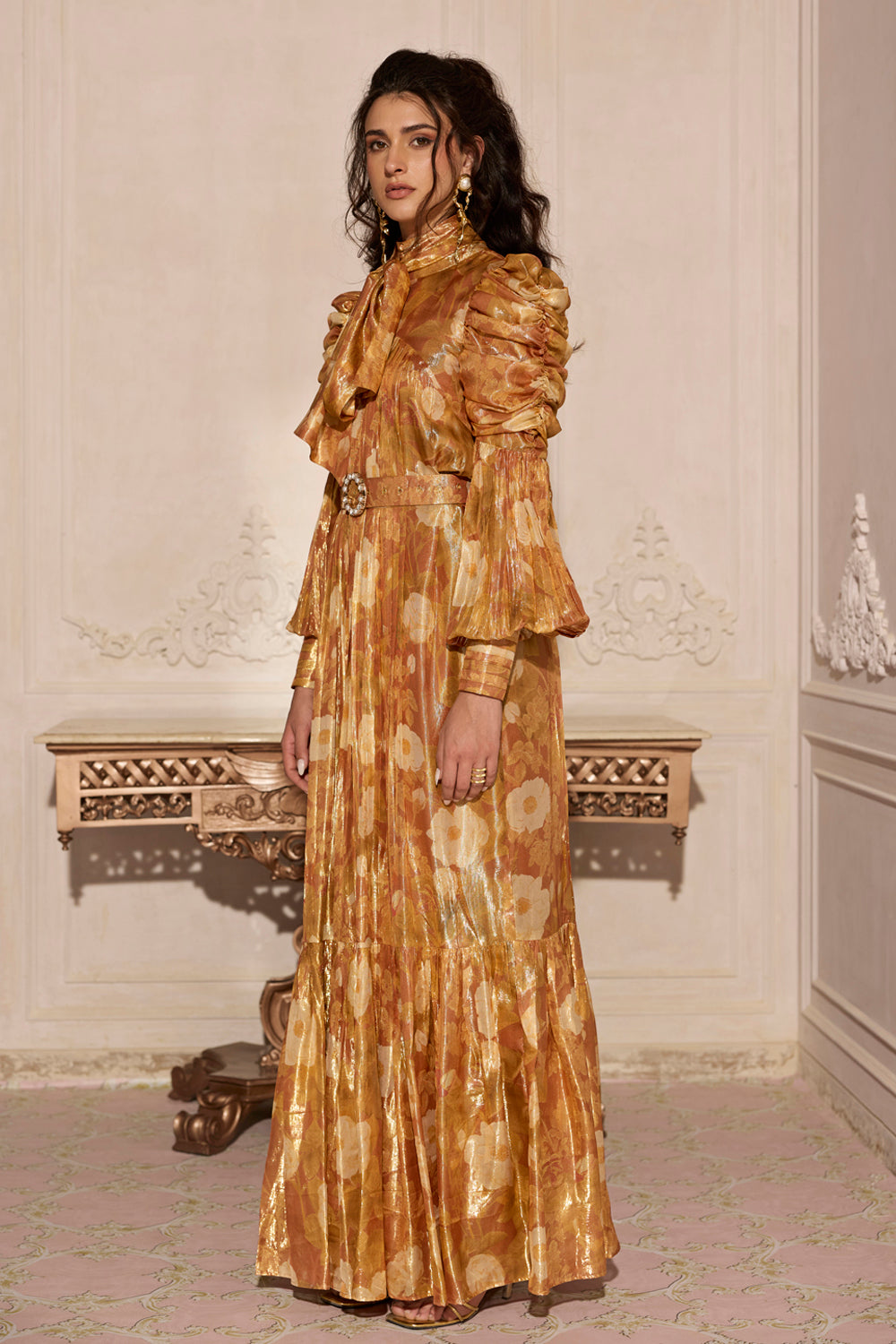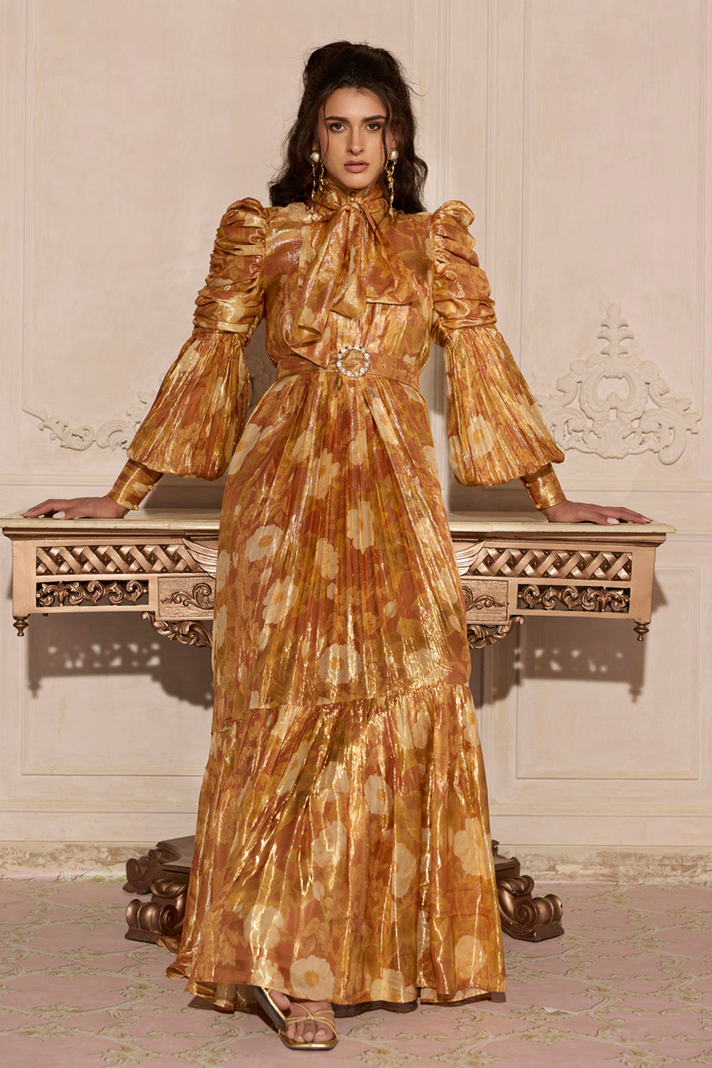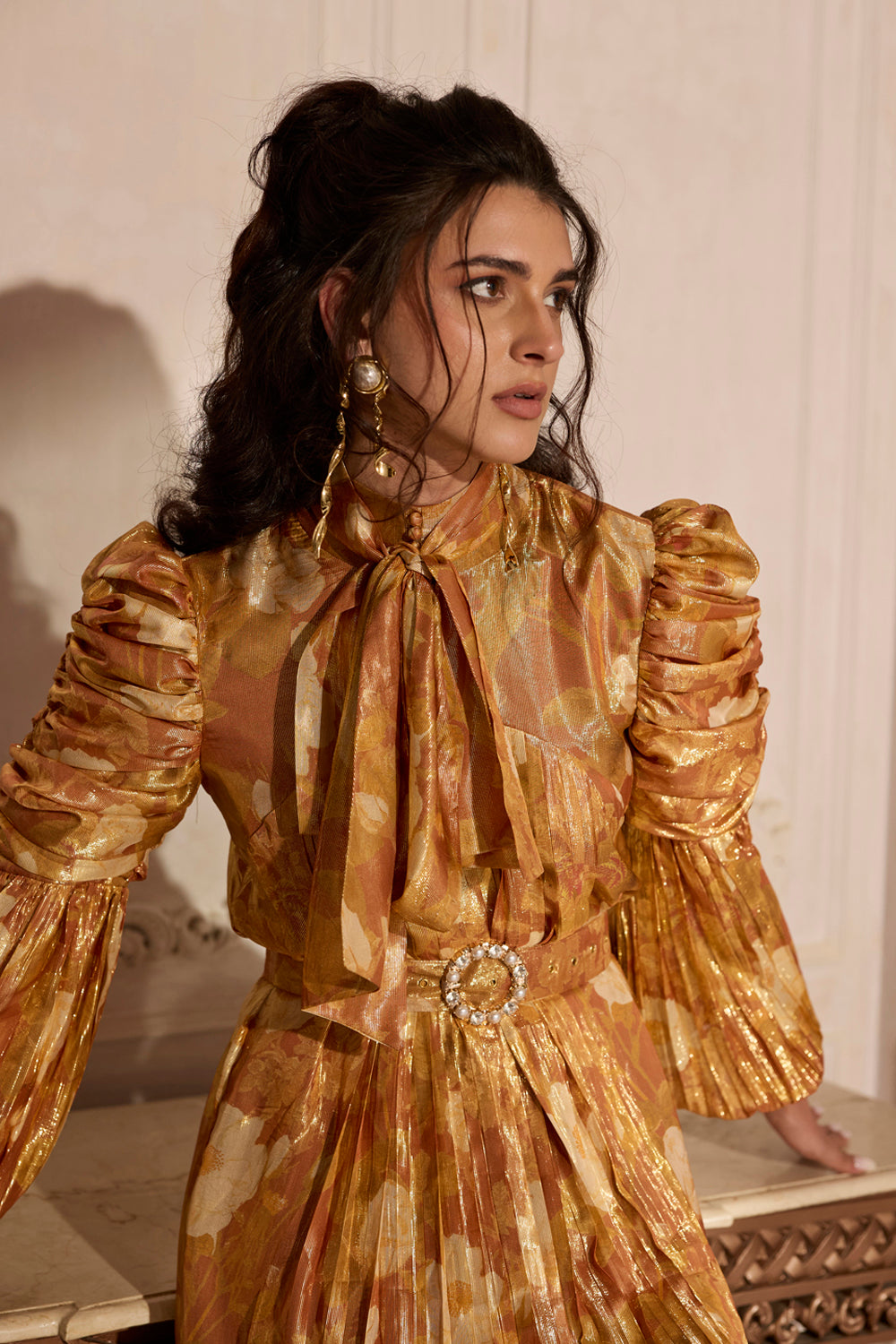 • Dramatic puff sleeves with pleated accents